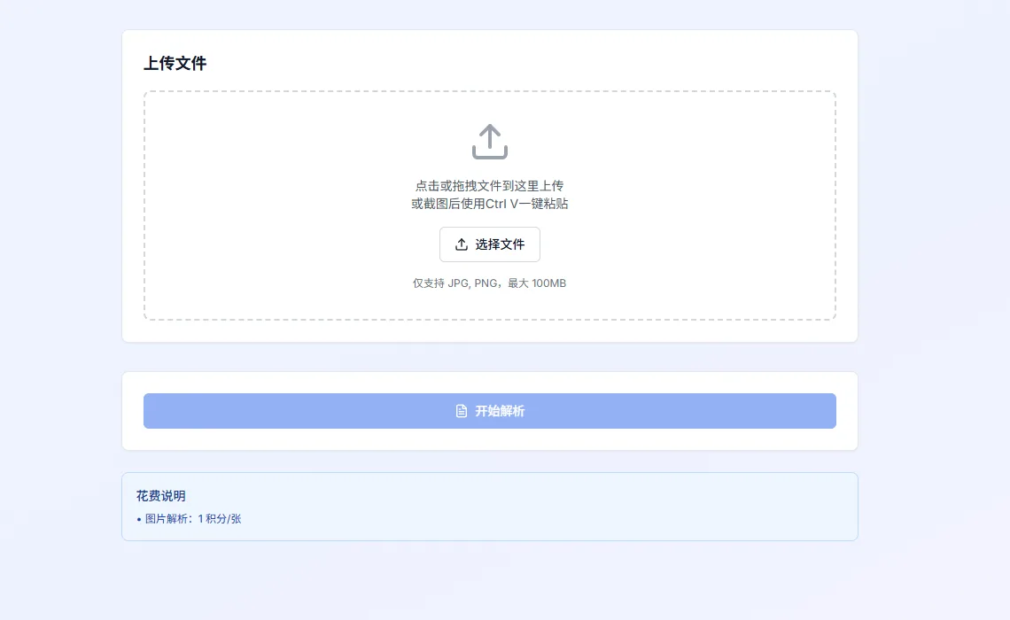 把图片传入后点「开始解析」,完成后去「历史文件」下载结果。图片质量直接决定识别准确率,如果原图模糊、倾斜或压缩严重,建议先处理图片再上传,事后补救比较麻烦。